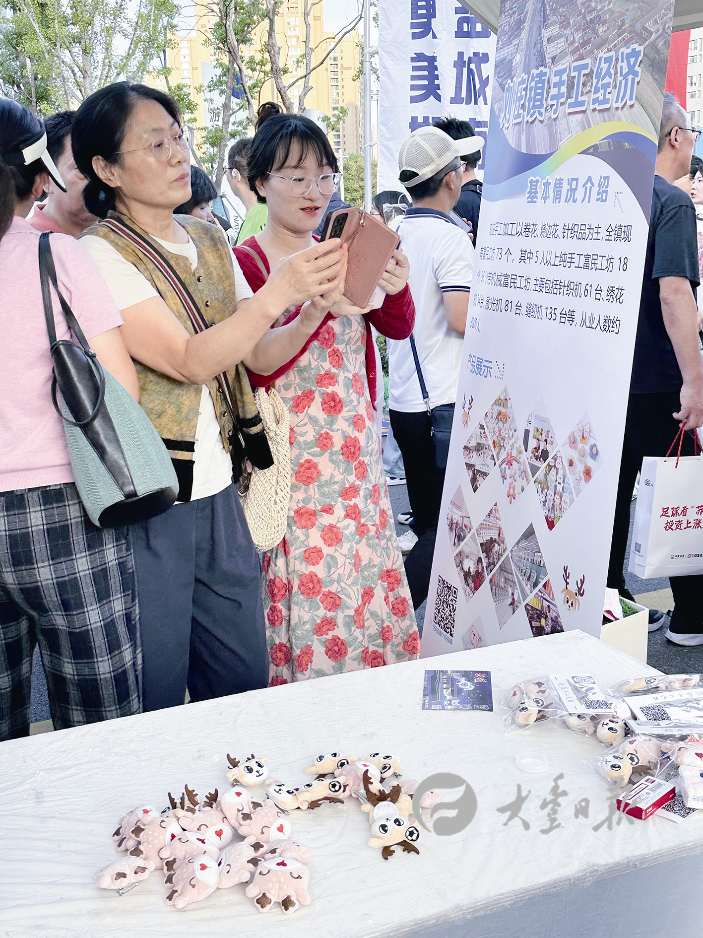 作为我区手工经济发展的重点乡镇,2008年起步以来,经过十多年的发展,逐步培育出一批手工加工点,形成了可观的产业规模。截至目前,该镇已有手工加工点73个,吸引5000名村民兼职参与,配套生产机械200台,年均销售额稳定在2亿元,成为当地村民家门口增收的重要渠道。“以前做手工,基本是‘来料加工’模式,企业给什么材料就做什么产品,利润空间有限,村民的手艺也难有发挥。”刘庄镇农村工作办公室工作人员顾昱介绍,2024年起,该镇着手推动手工经济转型升级,从“来料加工”向“来图加工”转变,鼓励加工点根据市场需求参与产品设计、承接定制订单。这一转变不仅提升了产品附加值,也让村民的手工技艺有了更广阔的施展空间,进一步拓宽了增收路径。这一转型在今年的“苏超”联赛中得到了生动体现,该镇巧妙结合盐城标志性文化符号“麋鹿”与赛事热点,自主设计开发了系列手工产品。“麋鹿是大丰的标志性符号,苏超联赛又是本土球迷关注的热点,把两者结合,既能突出地方特色,又能贴近市场需求。”该镇工作人员表示,该款挂件推出后,凭借独特的设计和本土属性获得市场认可,镇里同步借助抖音等网络平台开展宣传,让刘庄手工产品的辐射范围从乡村延伸至更广阔的消费群体。